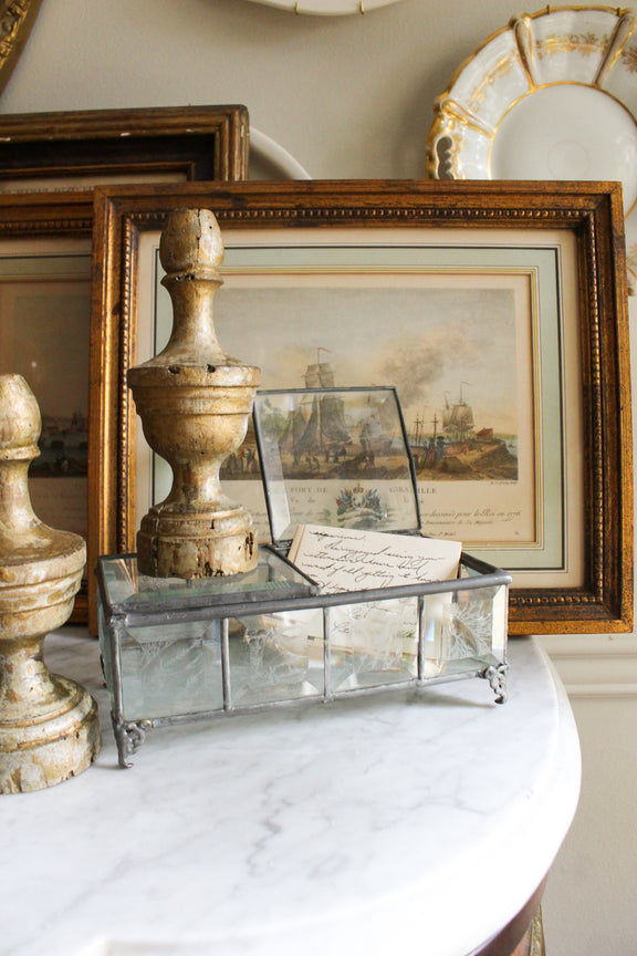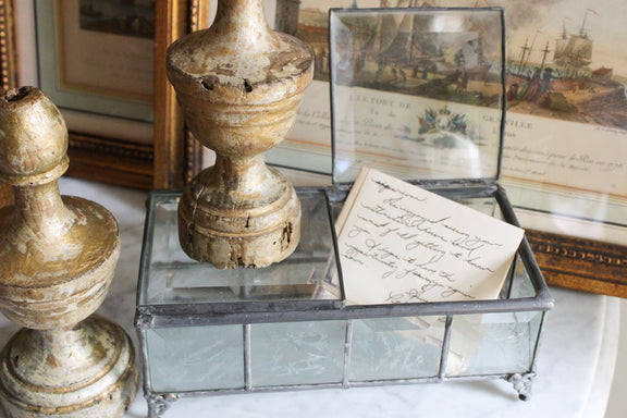 Double compartment, stained glass keepsake box. Beautiful to display loose photos and notes.
