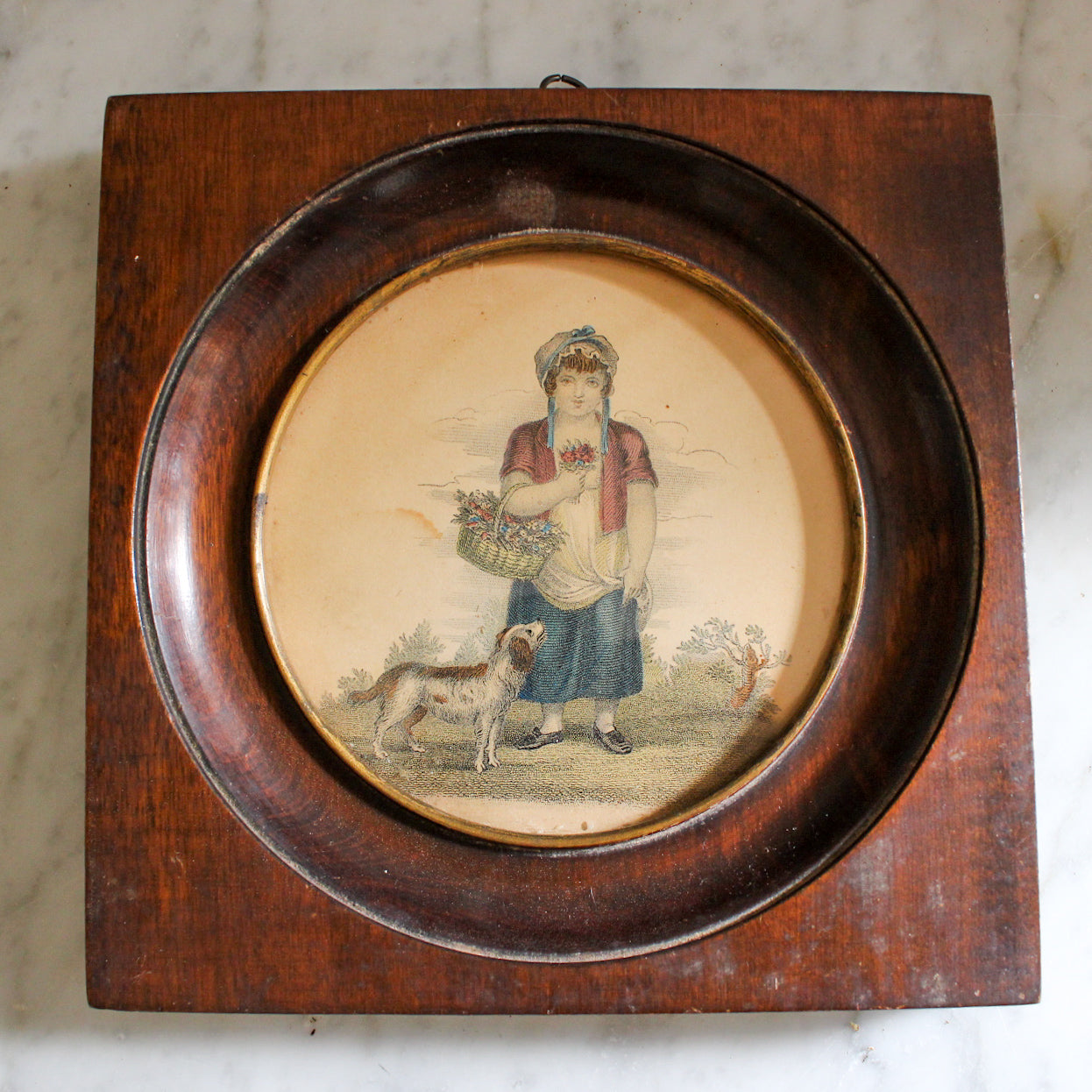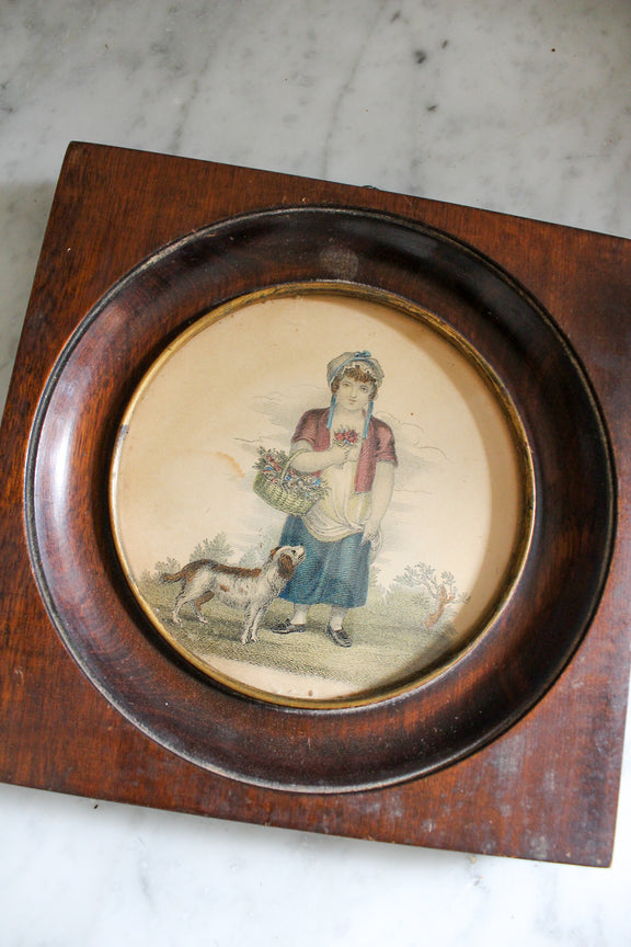 19c engraving in a hand carved wooden frame